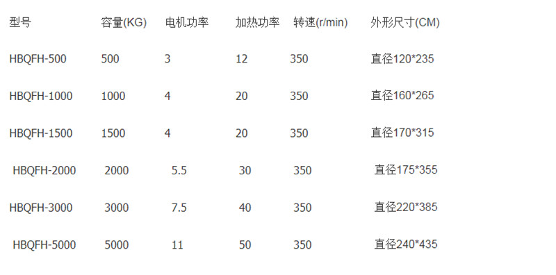 聚丙稀塑料顆粒大型熱風(fēng)干燥機參數(shù):